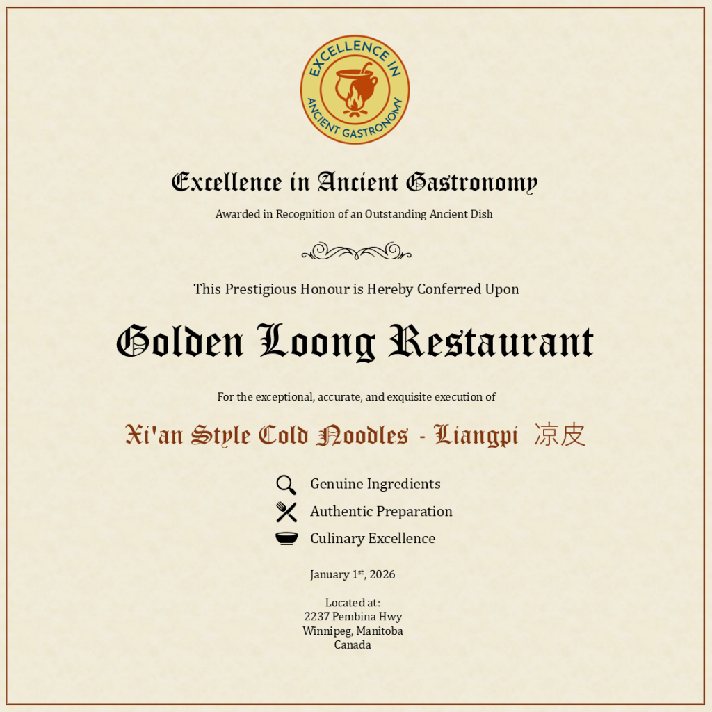 Xi’an–style cold noodles, commonly known as liangpi (凉皮), are classified as an ancient dish because they are rooted in early Chinese agricultural practices and food technologies that date back more than two thousand years. Originating in the region of Chang’an—modern-day Xi’an, one of China’s earliest imperial capitals—the dish reflects the everyday cuisine of populations living during the Qin and Han dynasties. Its continued preparation in the same geographic area establishes a rare and direct link between ancient foodways and contemporary regional cooking.